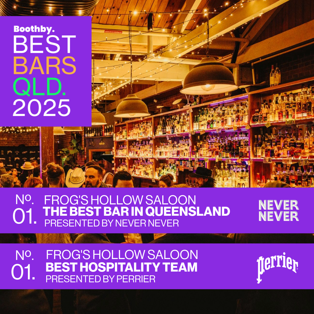 At the Boothby Best Bars QLD Awards back in June, Frog’s Hollow Saloon walked away with a couple of big awards. They were the winners, for the second year running, of The Best Hospitality Team in Queensland presented by Perrier — a recognition of their focus on service (and something that owner Pete Hollands talks about below).