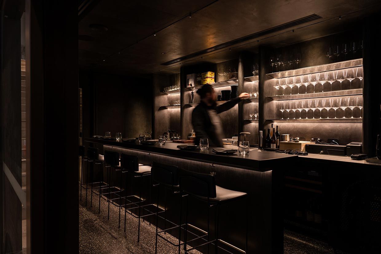 This luxe new addition to the Nomad group looks sleek — it’s a very Melbourne dark black interior — and seats just eight, across a courtyard from its sister restaurant, the very opulent Reine.