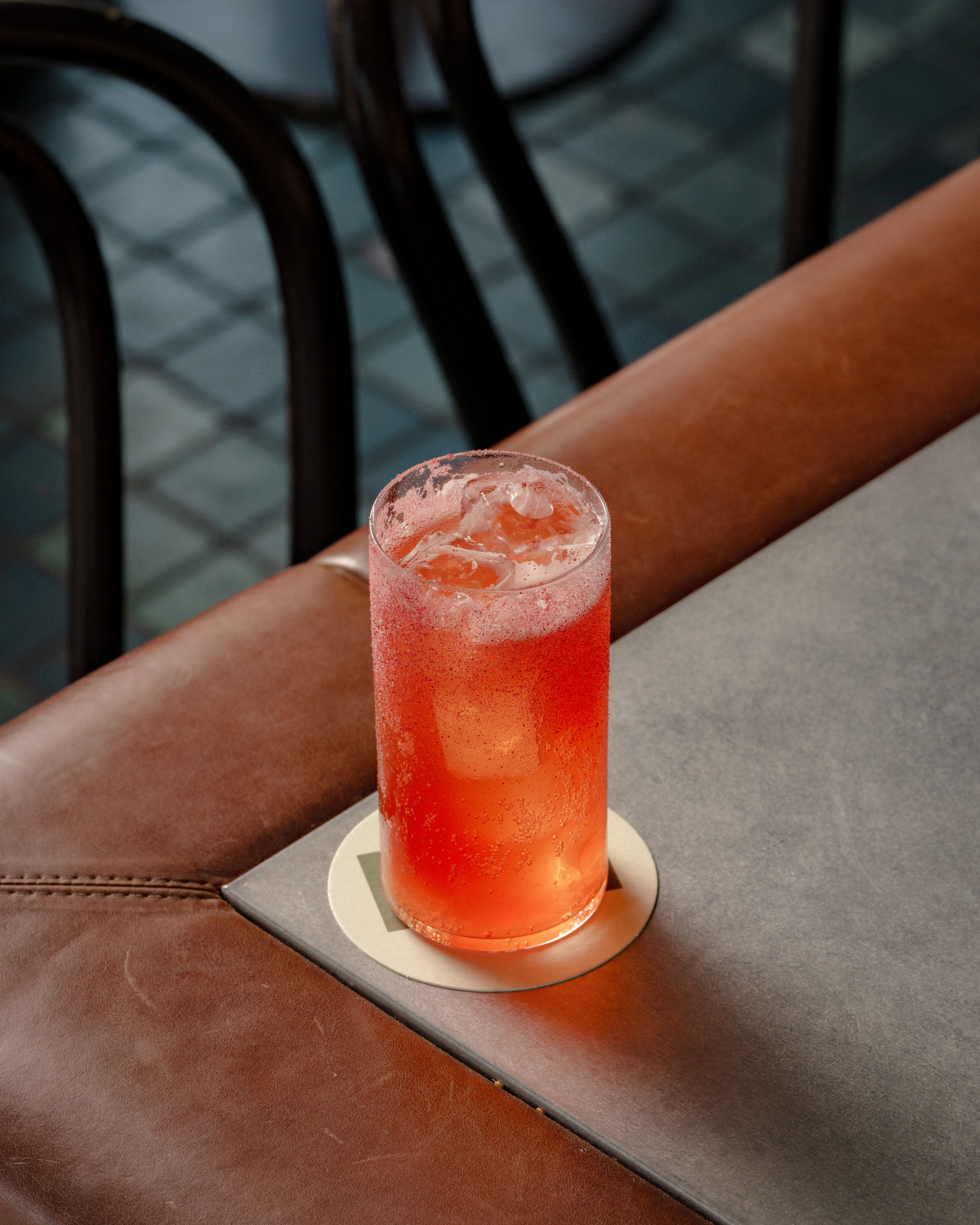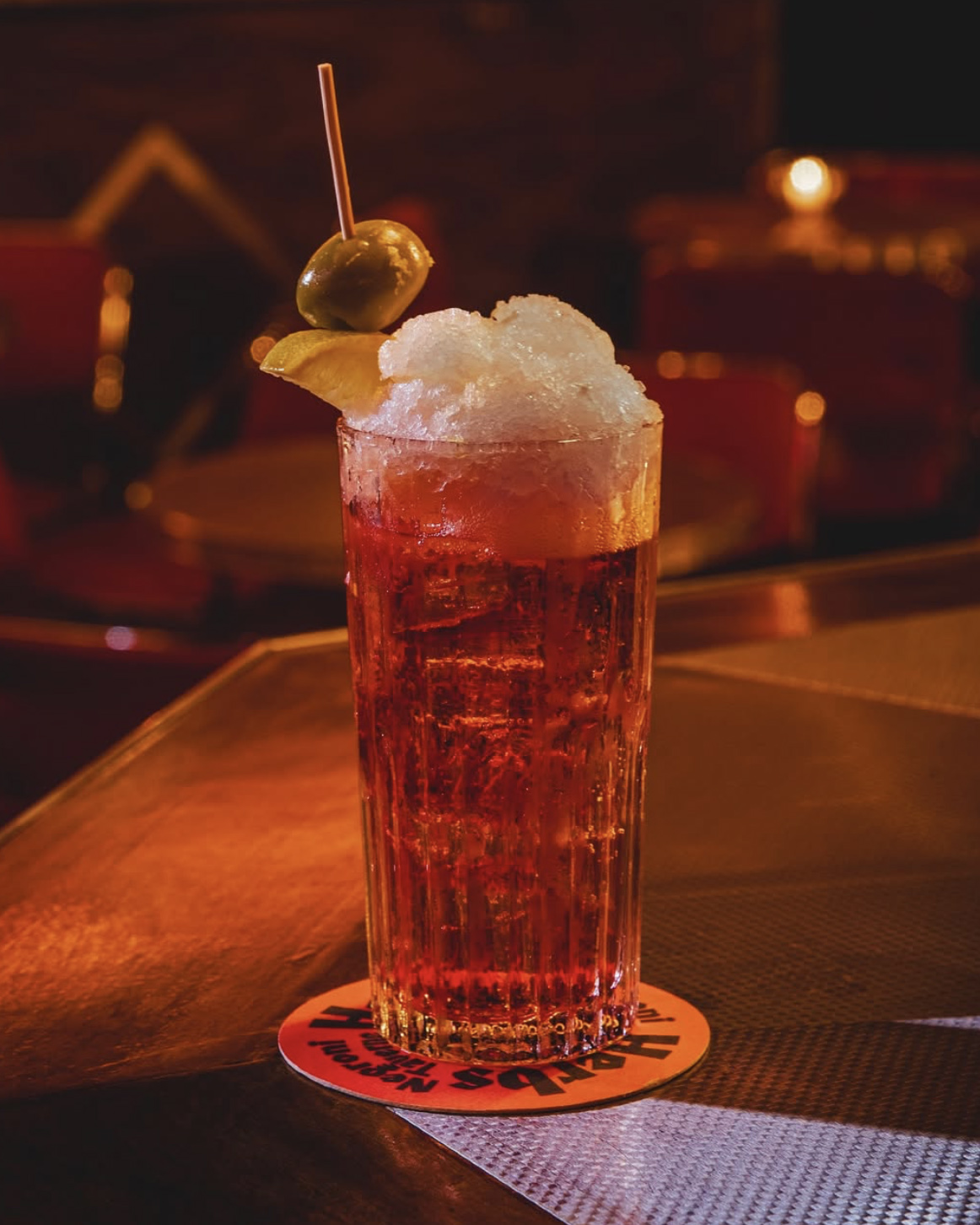 Ingredients: Campari, sweet vermouth blend, orris root bitters, soda, lemon granita.