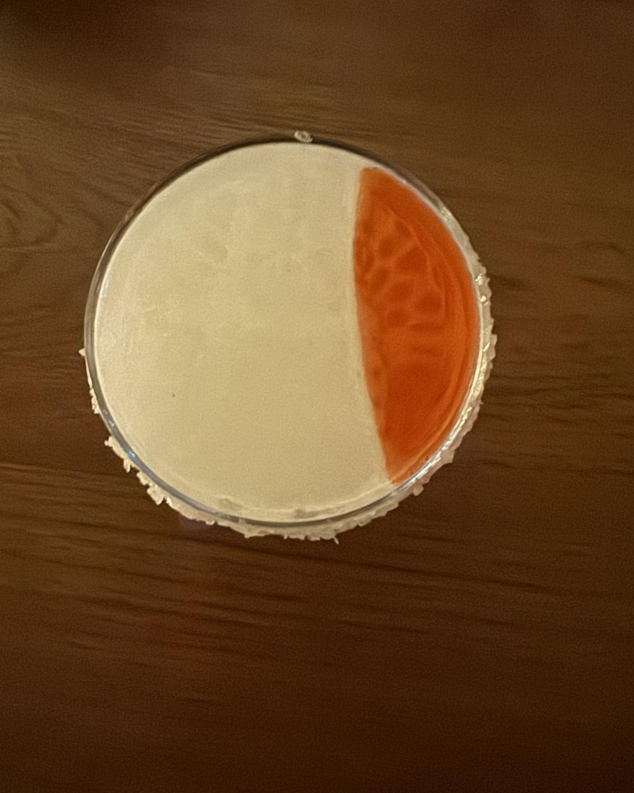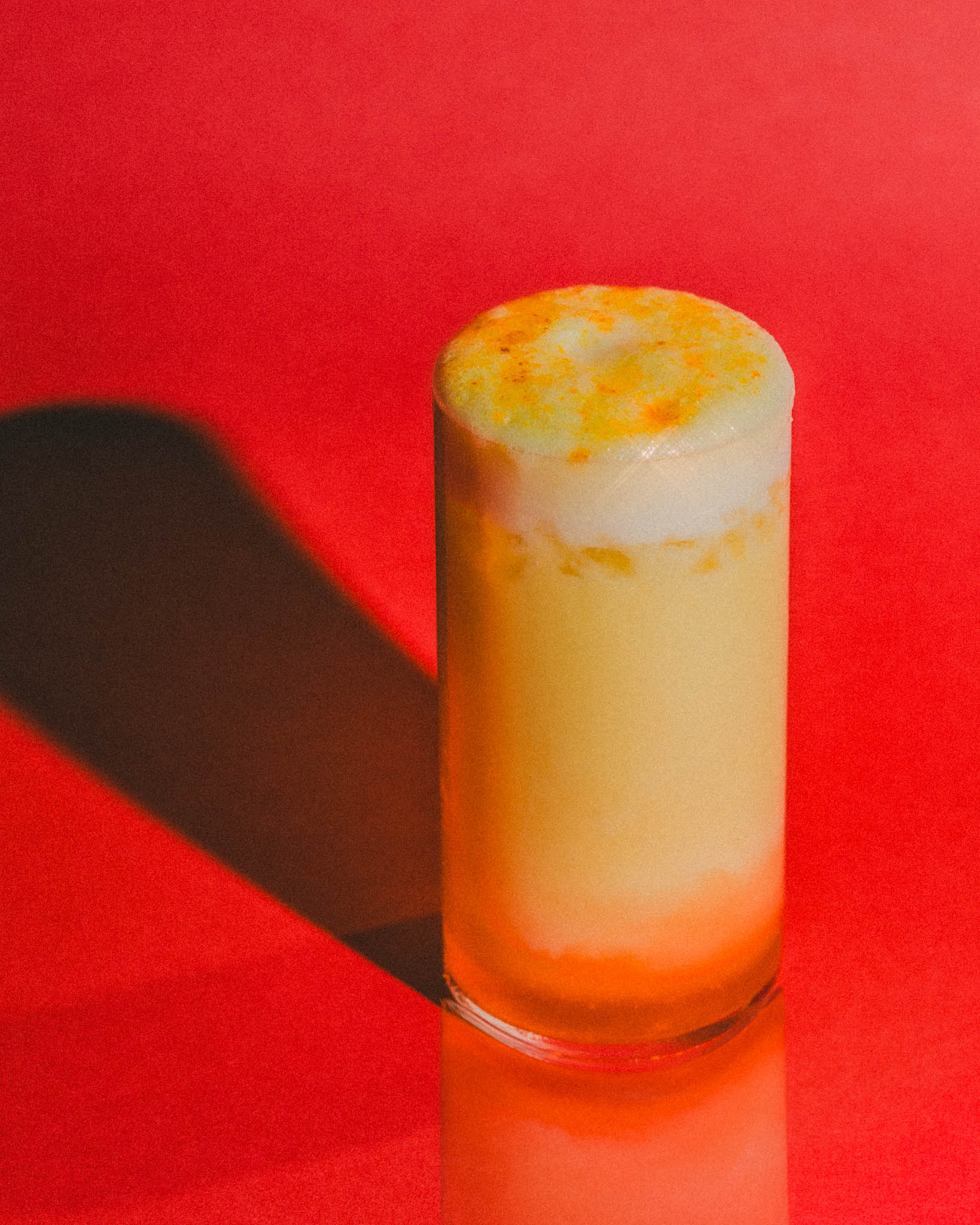 Ingredients: Bourbon, orange skin amontillado, Aperol, passionfruit verjuice, passionfruit and feta oleo, orange juice, egg white.