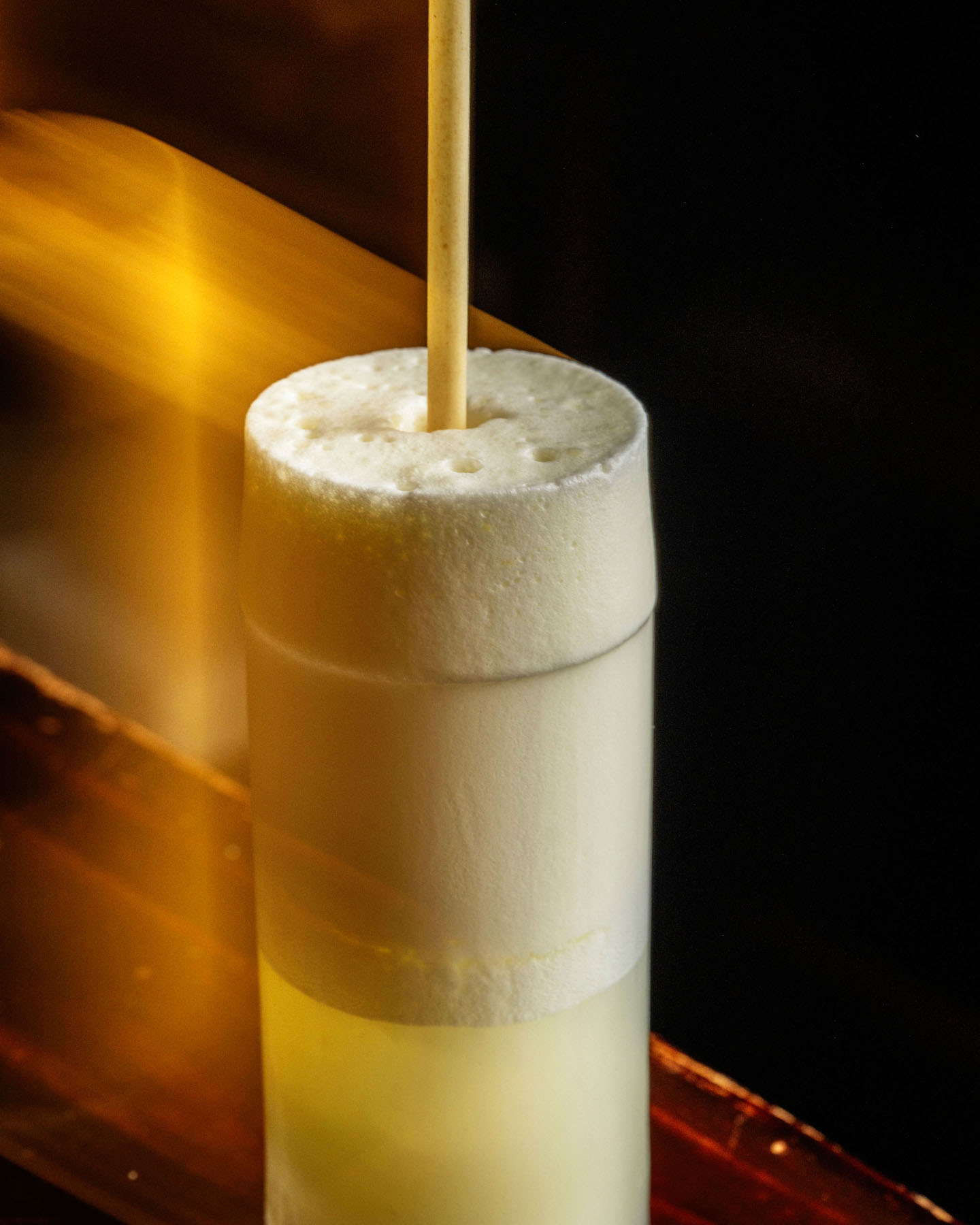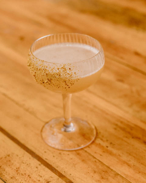 Ingredients: Basil Hayden Bourbon, Amaro Nonino, lemon juice, peated rice orgeat, bee pollen.