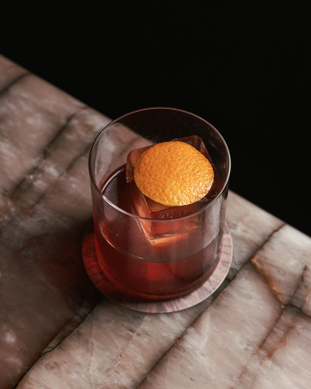 Ingredients: Tequila, peach liqueur, verjus, aperitif blend, orange bitters, malic acid, orange twist.