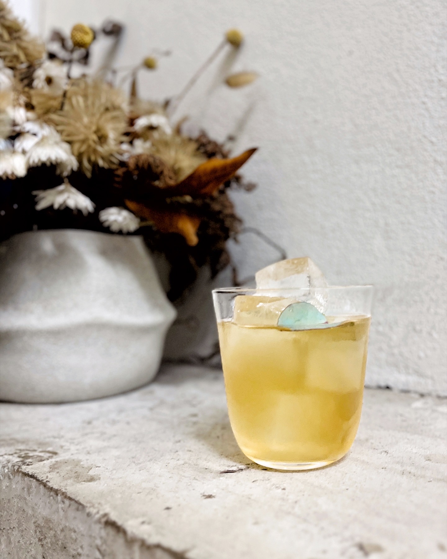 Ingredients: Blanco tequila, oloroso sherry, elderflower liqueur, shio koji, grapefruit cordial, smoked rooibos soda, grapefruit granita and lemon balm.