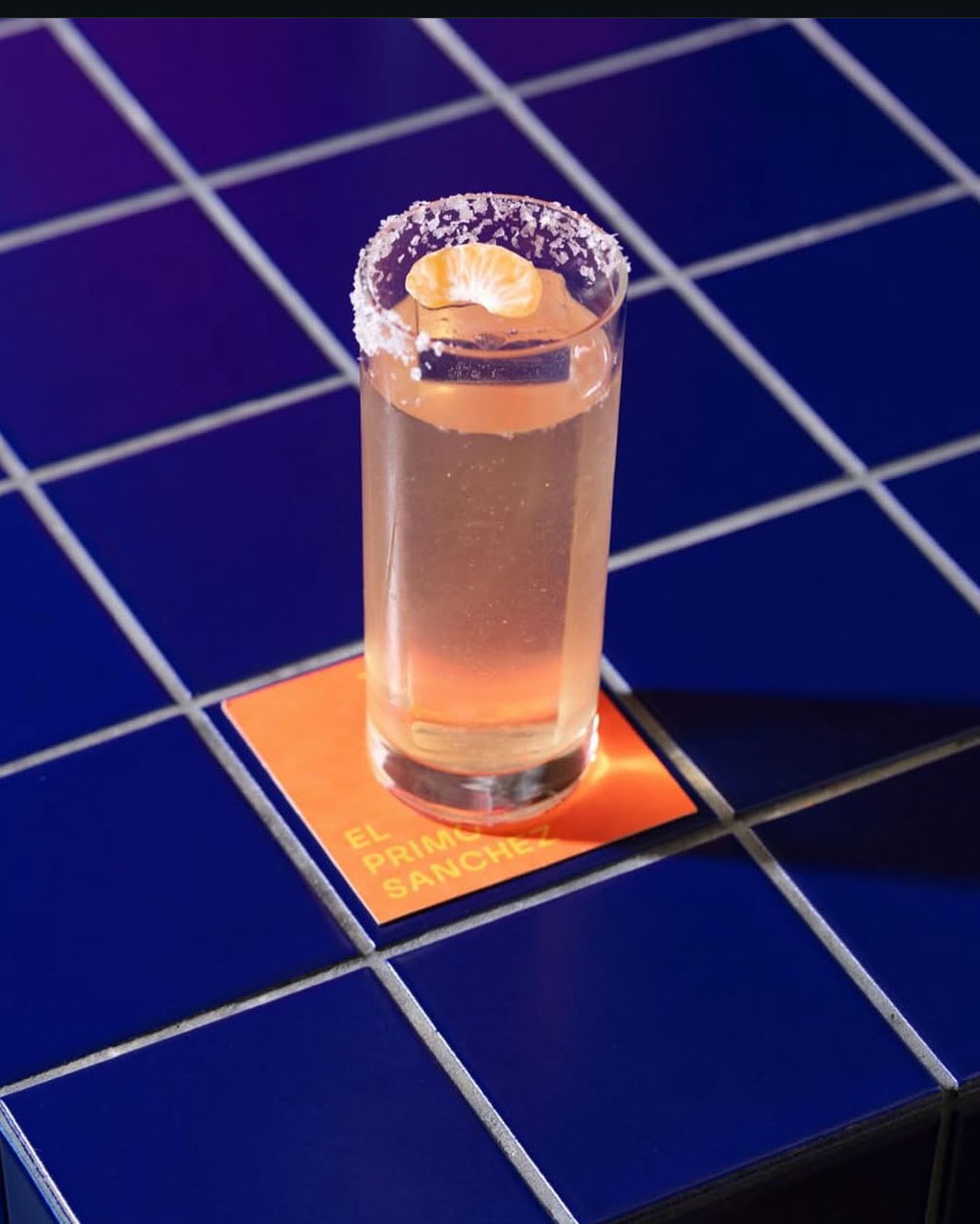 Ingredients: Blanco tequila, mandarin liquor, mandarin soda, agave syrup, lime juice, carbonated.