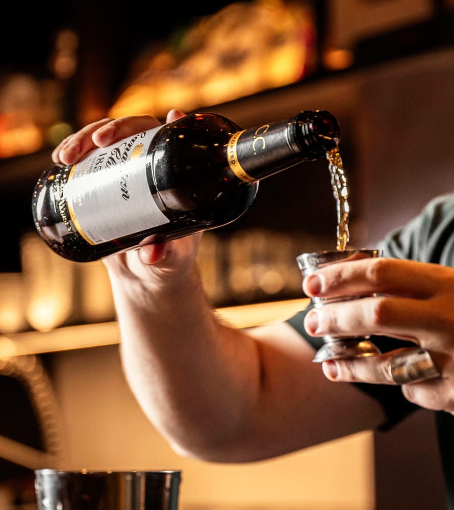 - Strain into a chilled Fizz glass and top with soda, no ice.