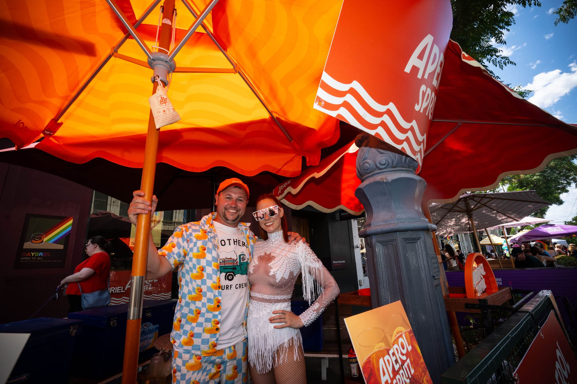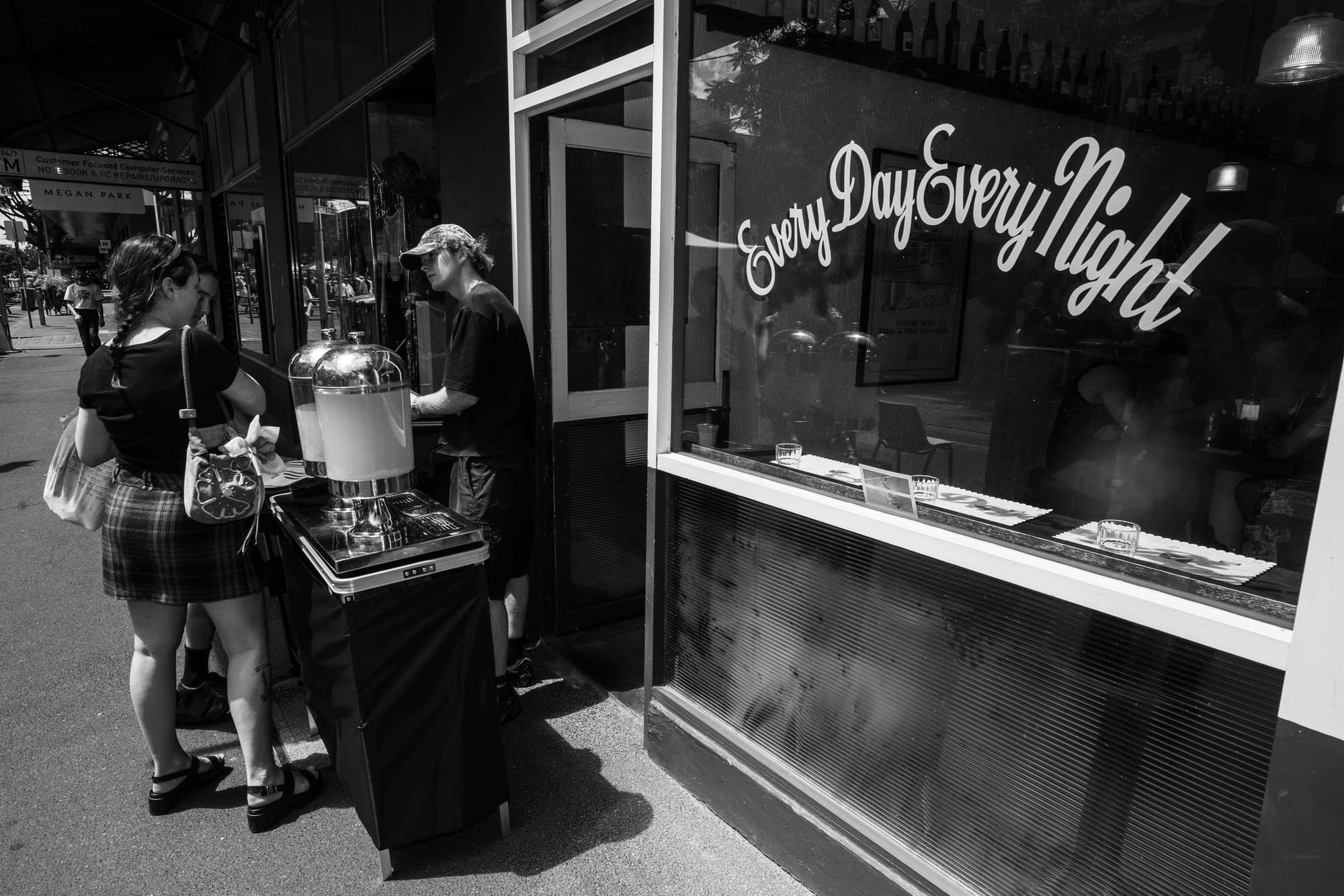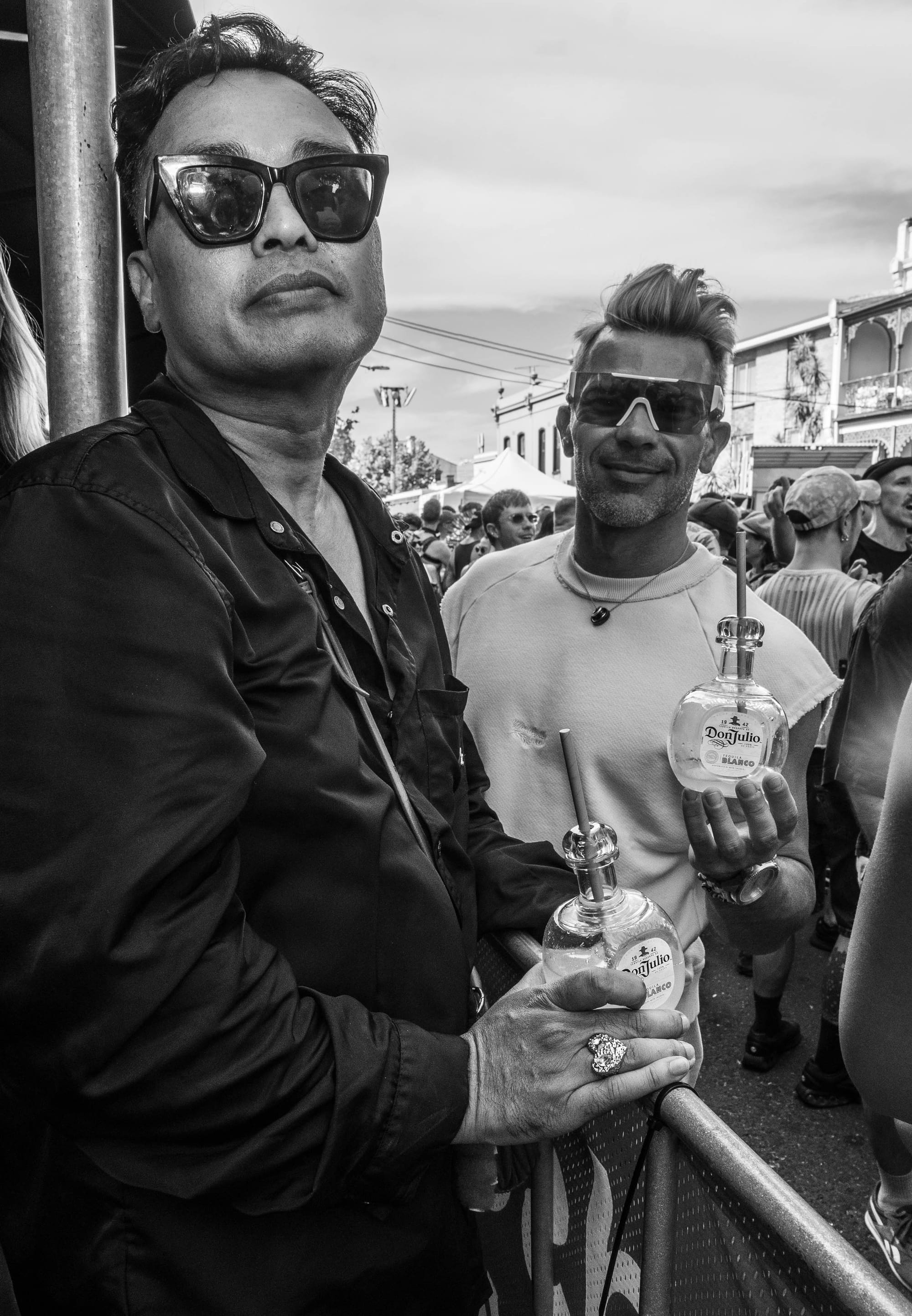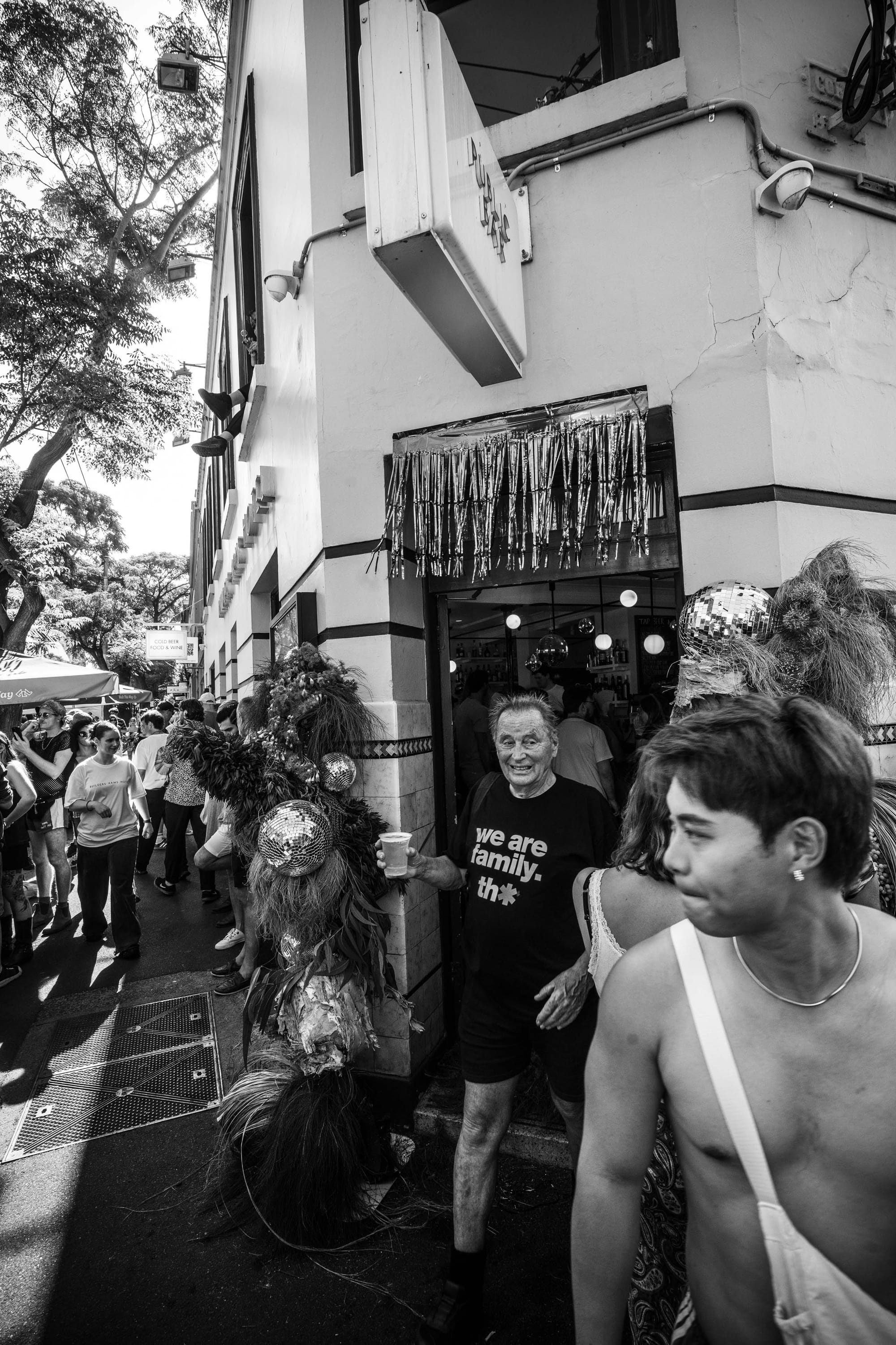 This early in the day, things are just getting started, as the bars, pubs, clubs, cafes and restaurants are setting up for what looks like it’s going to be a huge shift. The Builders Arms is set with frozen Margies inside, and a stand outside doing snags and Stomping Ground Pride Ale, while the Fitzroy Beer Garden has a phalanx of slushie machines ready to go, filled with frozen Pornstars and Watermelon Margaritas, and there are drinks stands set up in front of pretty much every venue. Everyone from the Turkish kebab shops to the Japanese izakayas to the couture optometrist are on board to celebrate, and it’s wonderful to see the whole community out and loud and proud, beaming and preening in the summer sun.