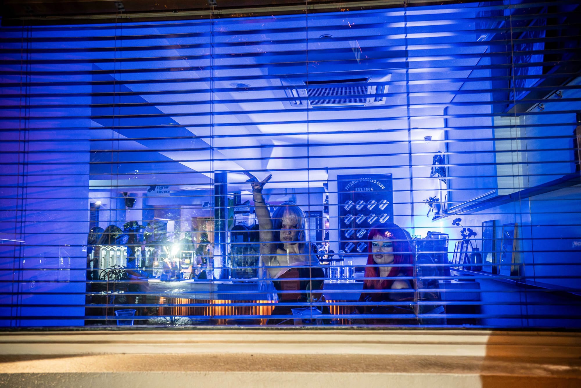 As I made my way home, not wanting to intrude with my camera into indoor spaces that should remain safe from my cic het self, I see the crew from Arcadia having a well-deserved knock-off out front, and through the window of The Gertrude, some fabulous friends with still enough energy to vamp for me in the blue light of the after party.