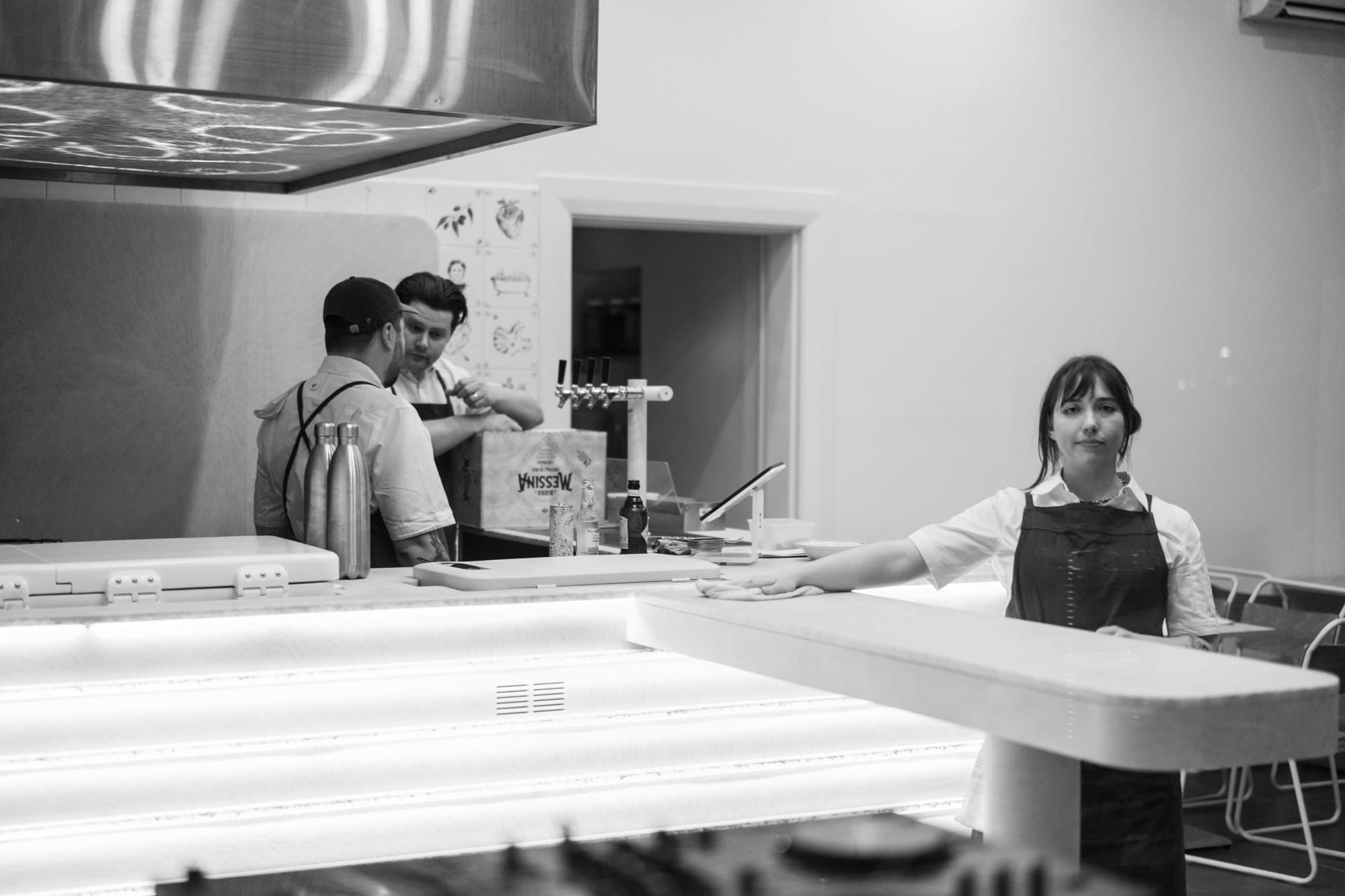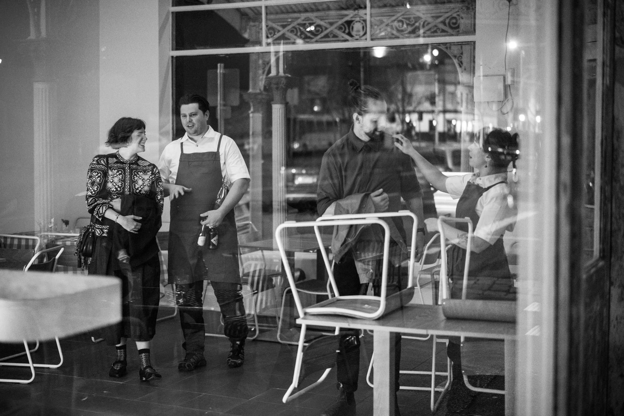Dani, Oska and Lachie say goodby to the last lingering guests, pack up, and finally sit down at Bar Bellamy for a much-needed knock off, their job done, at least for today.