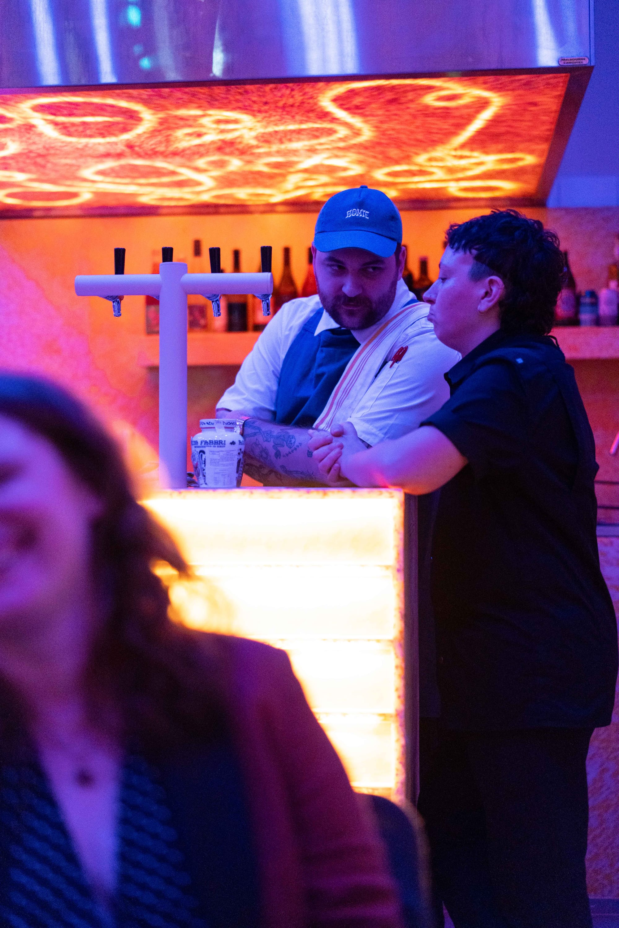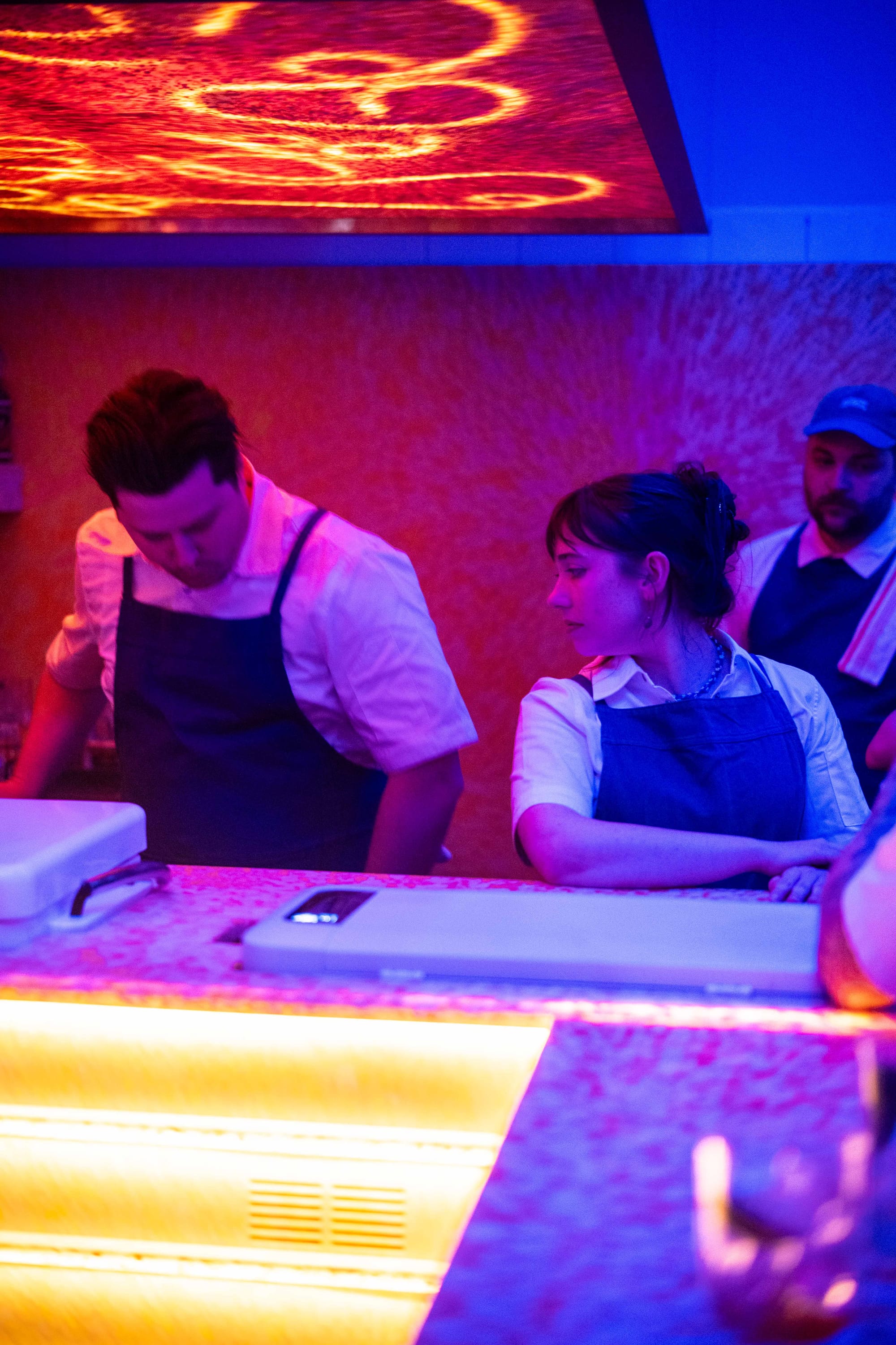 As the sun goes down, a roster of Melbourne hospo royalty shows up to wet the baby bar’s head, smashing Martinis and Spritzes as the lights turn blue for party mode. As the night winds down, Chef Lorena Corso emerges from the kitchen for a well-deserved beer and a chat.