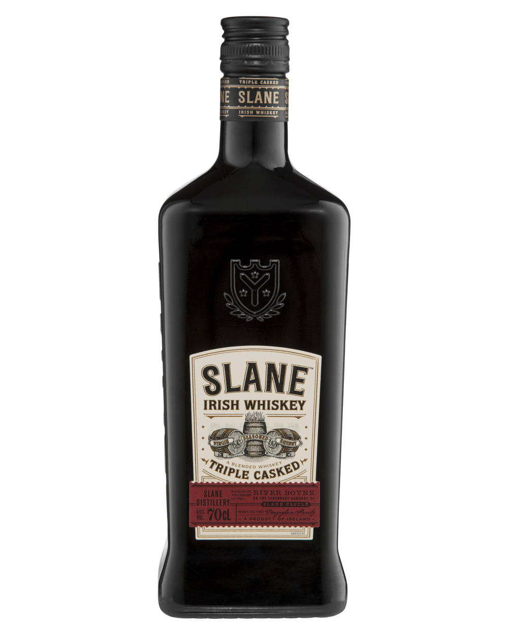 Slane Irish Whiskey is aged using a 'triple casked' method, which sees three types of casks used: virgin oak casks, seasoned oak casks, and oloroso sherry casks. There are notes of butterscotch, fruit, and vanilla on the nose, with spicy, dried fruits and sweet characters coming through on the palate, and a lingering, creamy finish.