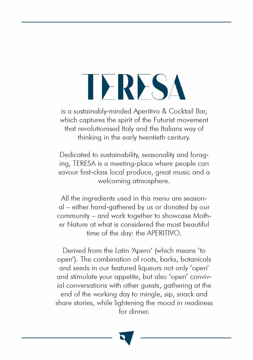 The menu at Teresa leans heavily into the aperitivo culture of Italy, with a special focus on vermouth and amari. But it’s the cocktails that are the star of the show at Teresa, with Marseglia drawing upon a knack for foraging and the Italian Futurism art movement for inspiration.