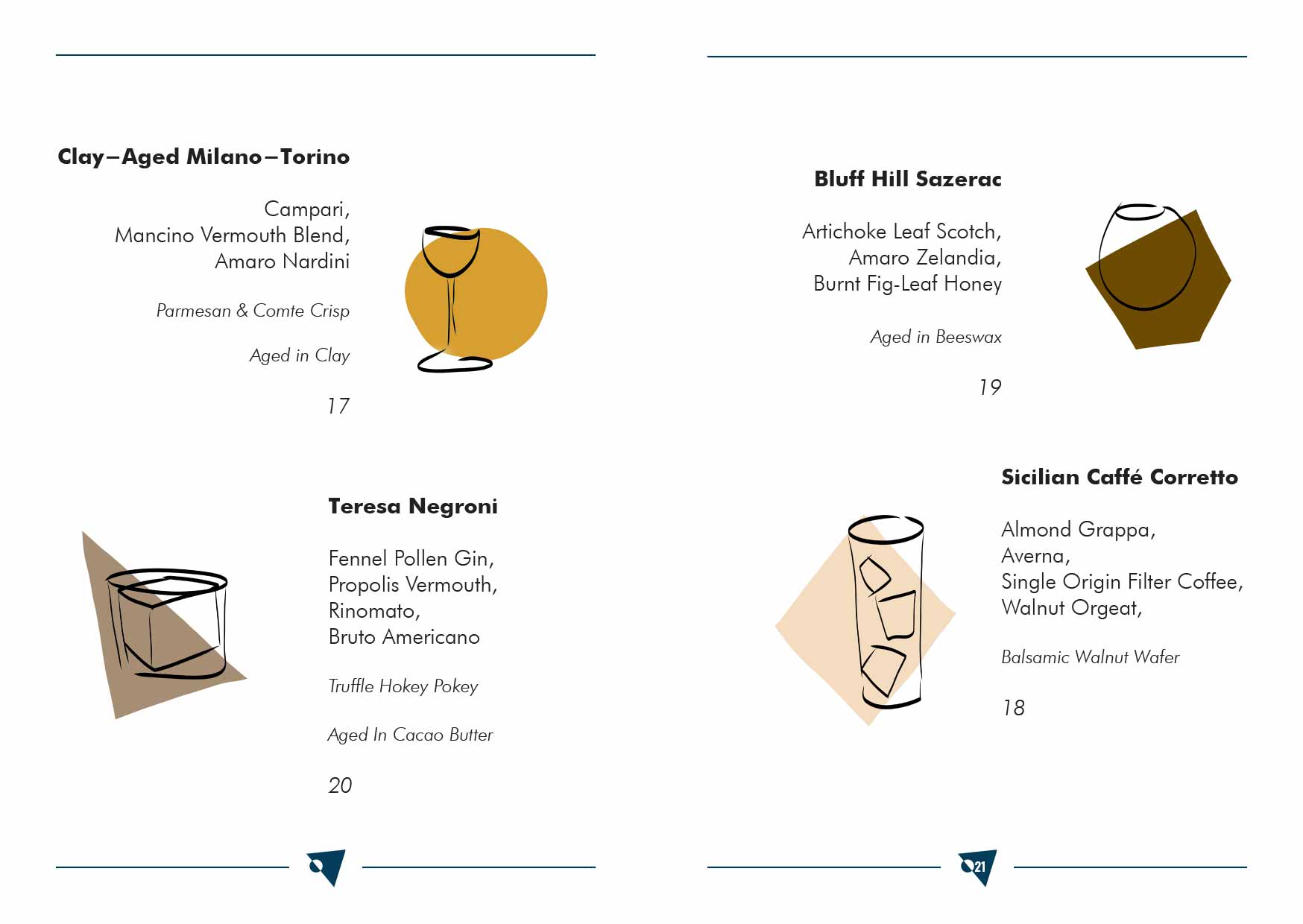 “Here we serve a boozy, digestive style of cocktail with a focus on Italian classic cocktails such as Mi-To, Negroni, Coffe Correttos etc.”