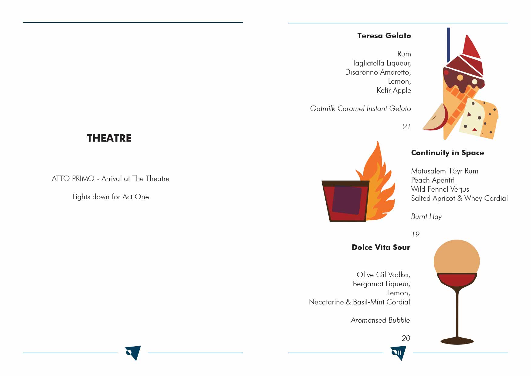The first pre-theatre section focuses on low alcohol aperitvo style drinks. Next, comes two separate ‘Theatre’ sections, in which Marseglia says you’ll find theatrical and fun drinks.