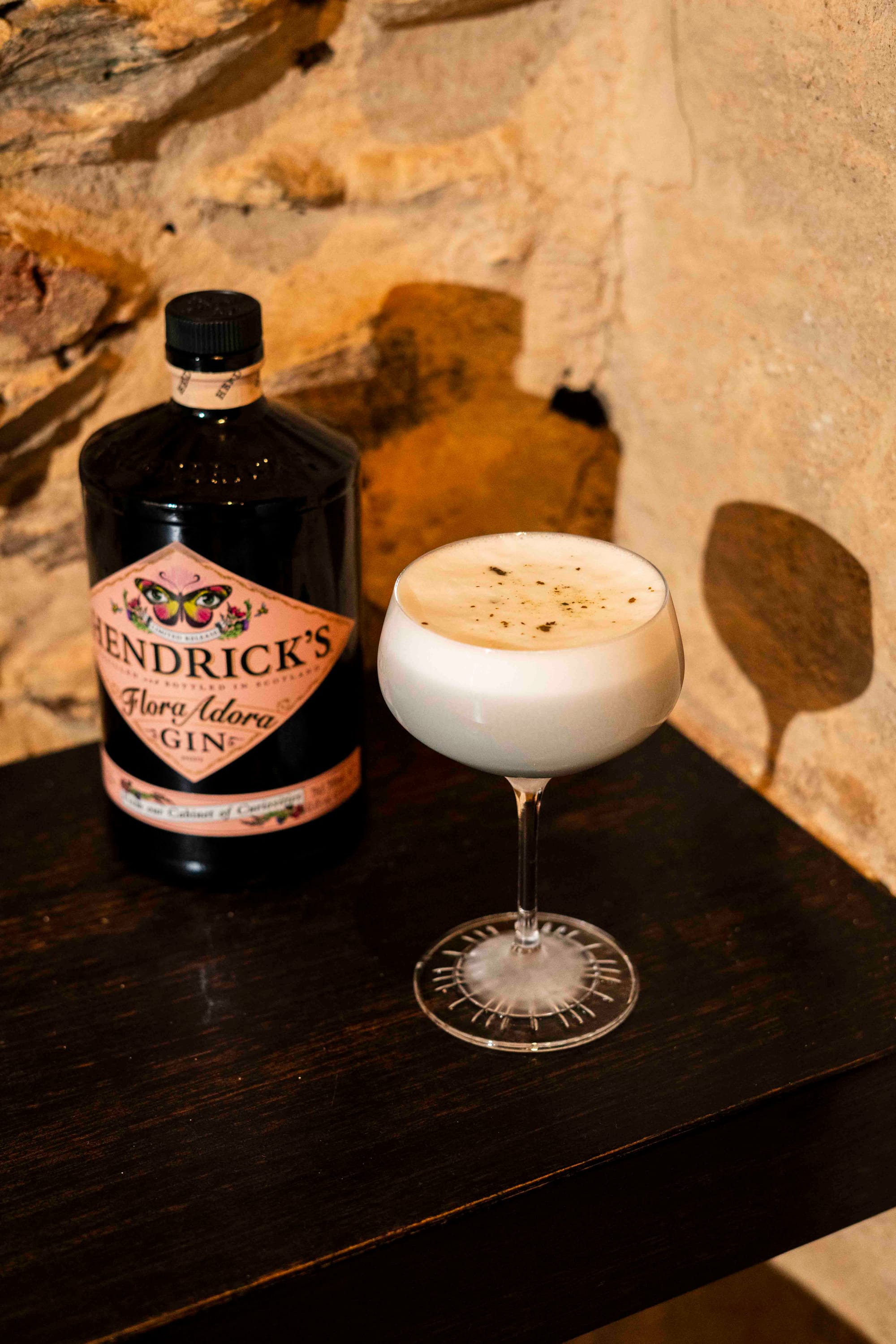 Using the Hendrick’s Flora Adora, it’s quite herbaceous, you can smell it, it’s delicious, it’s quite an intense bit of musk, we’re using creme de violette, a bit of citrus, and coriander oil, and as well as a coriander dust.