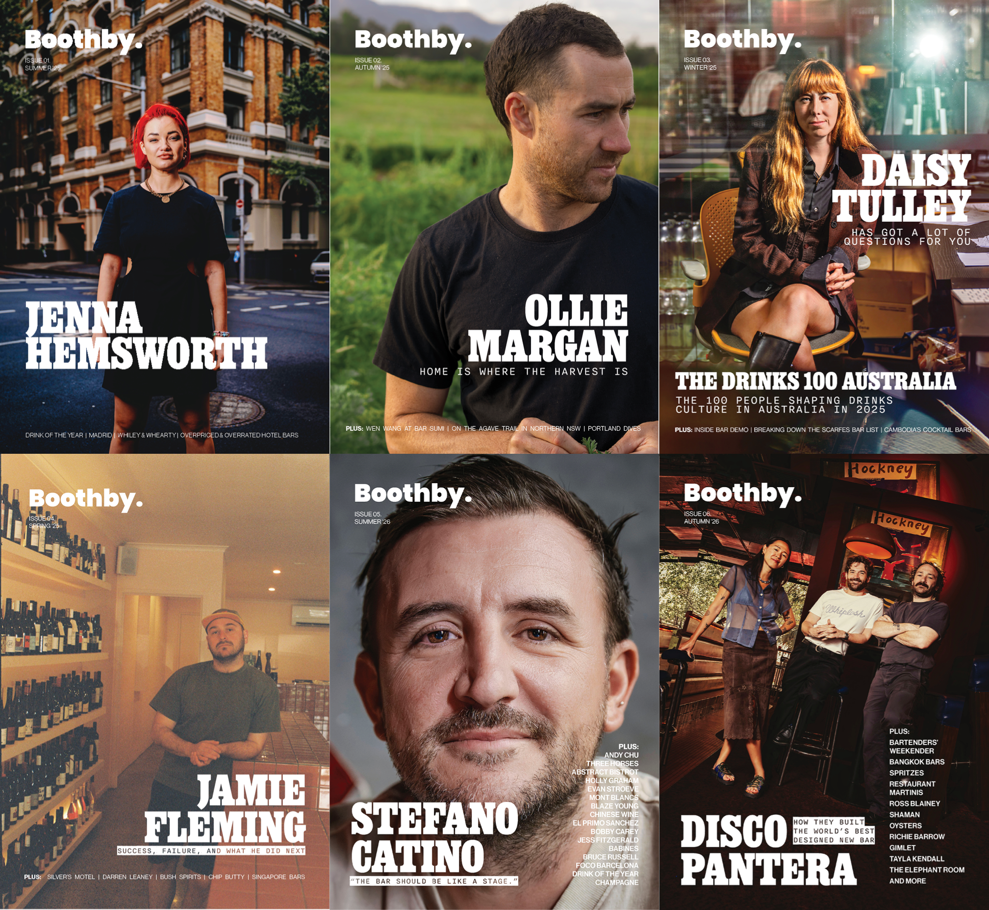Starting with the current issue, get four issues of Boothby in big, glorious print each year, plus gain access to all subscriber-only content on boothby.com.au. Also, you get the good feeling that comes from supporting independent drinks and bar writing.