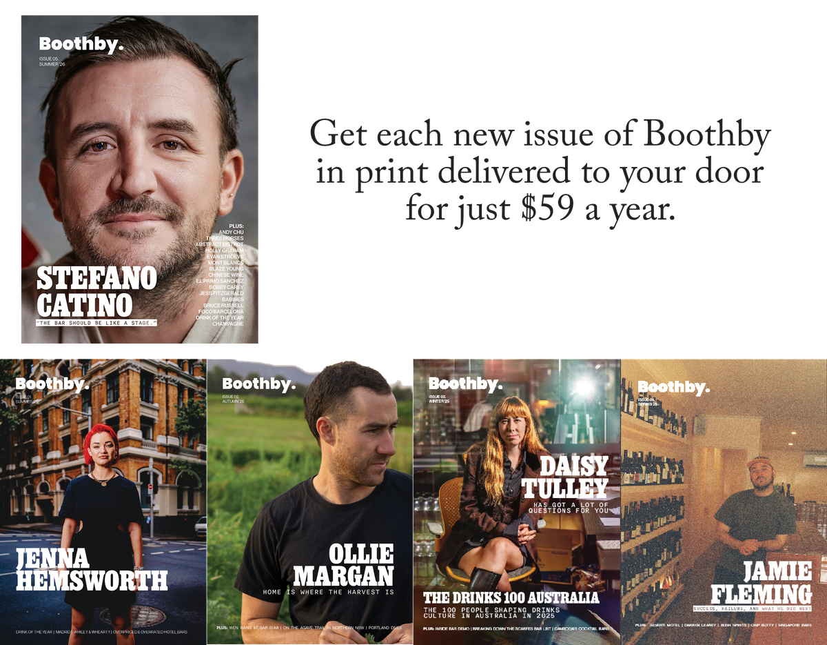 While I have you, a request: if you are enjoying these stories and finding Boothby useful, the best way to support Boothby is by becoming a paid subscriber — you'll receive each issue of the quarterly Boothby magazine to your door, preferential access to our events, and the warm, fuzzy feeling you get from supporting our indie bar journalism. You can do that now at the link below.