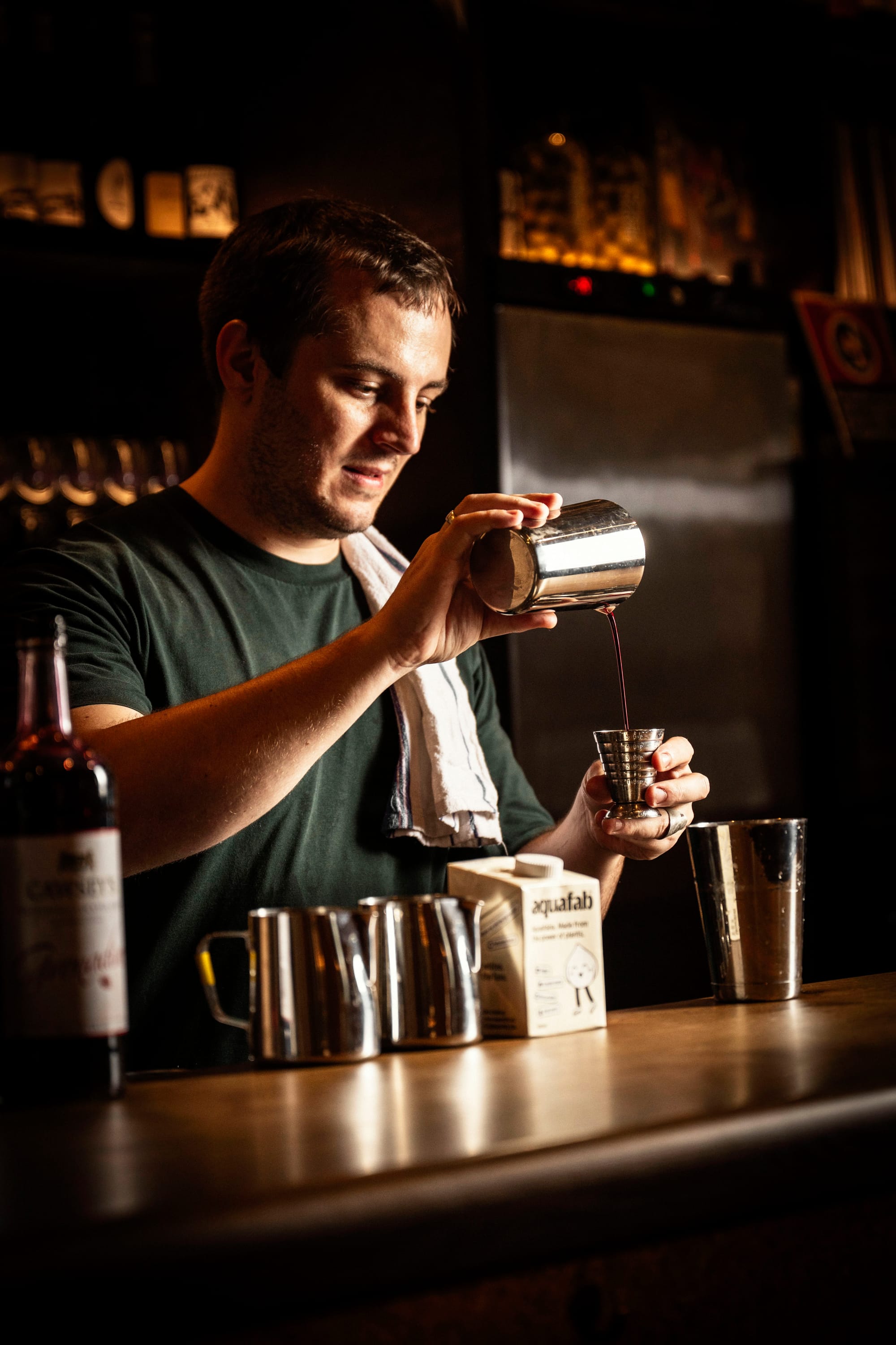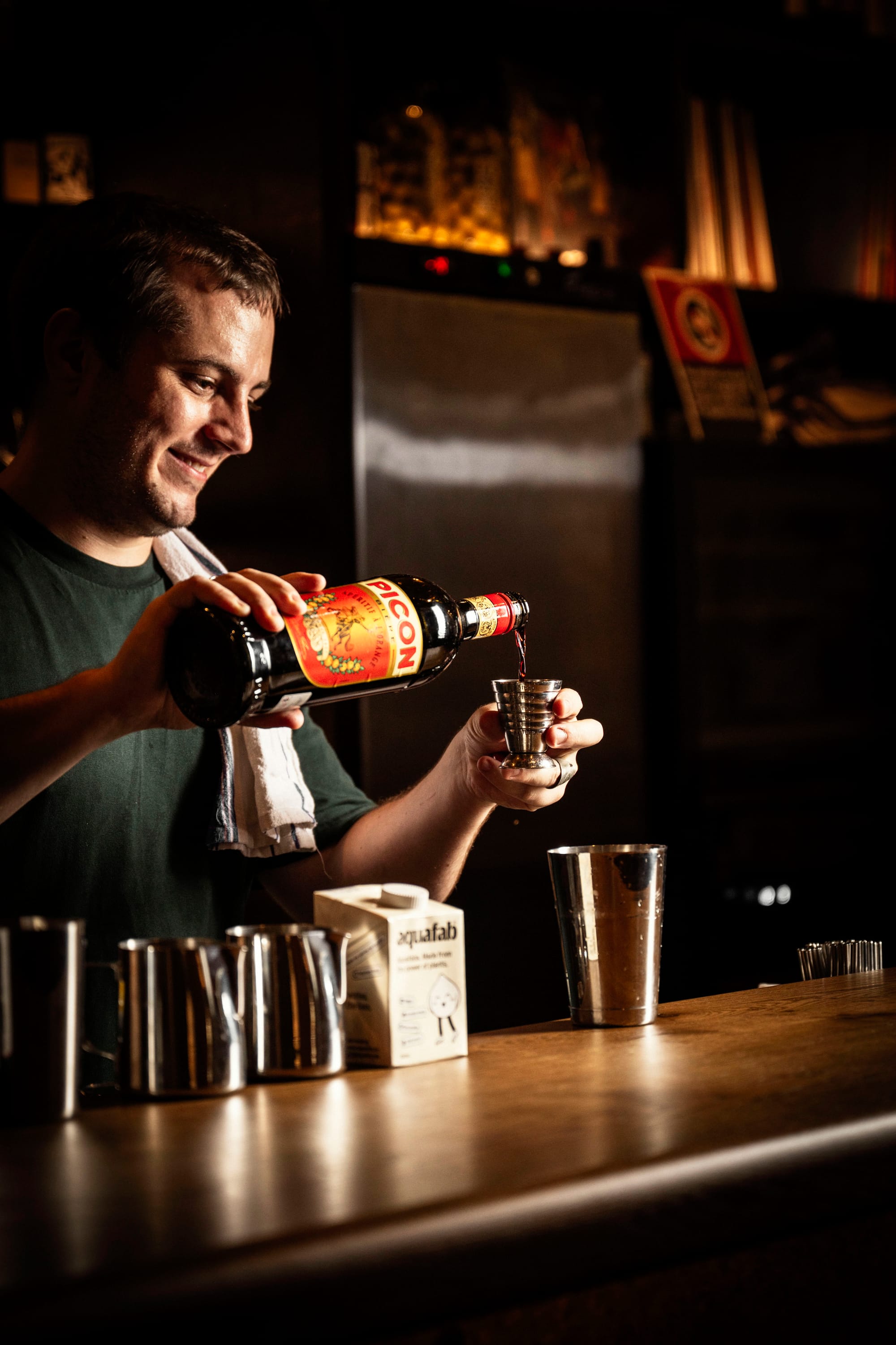 - Measure 45ml of an orange bitter like Amer Picon, and add to a shaker.