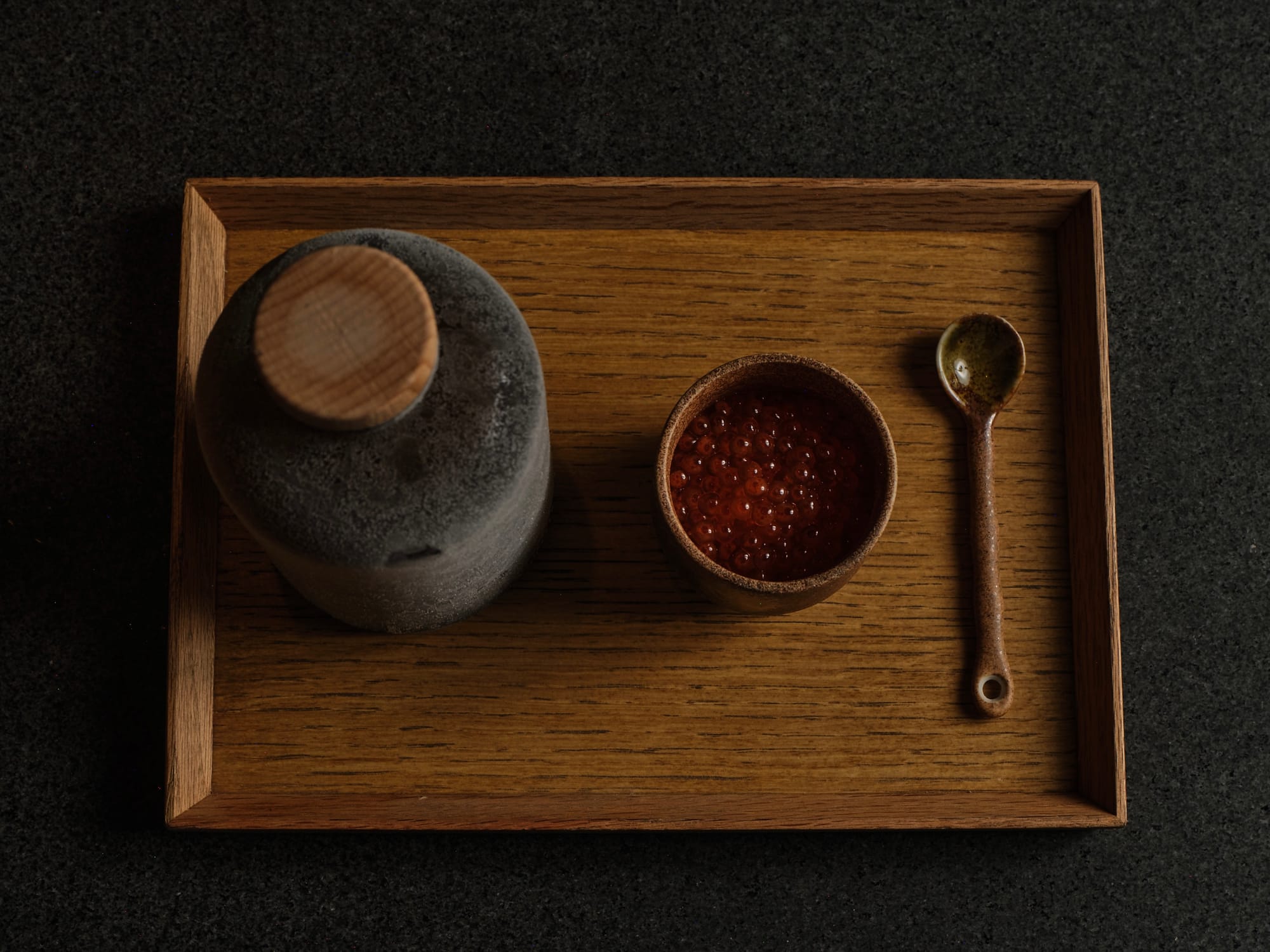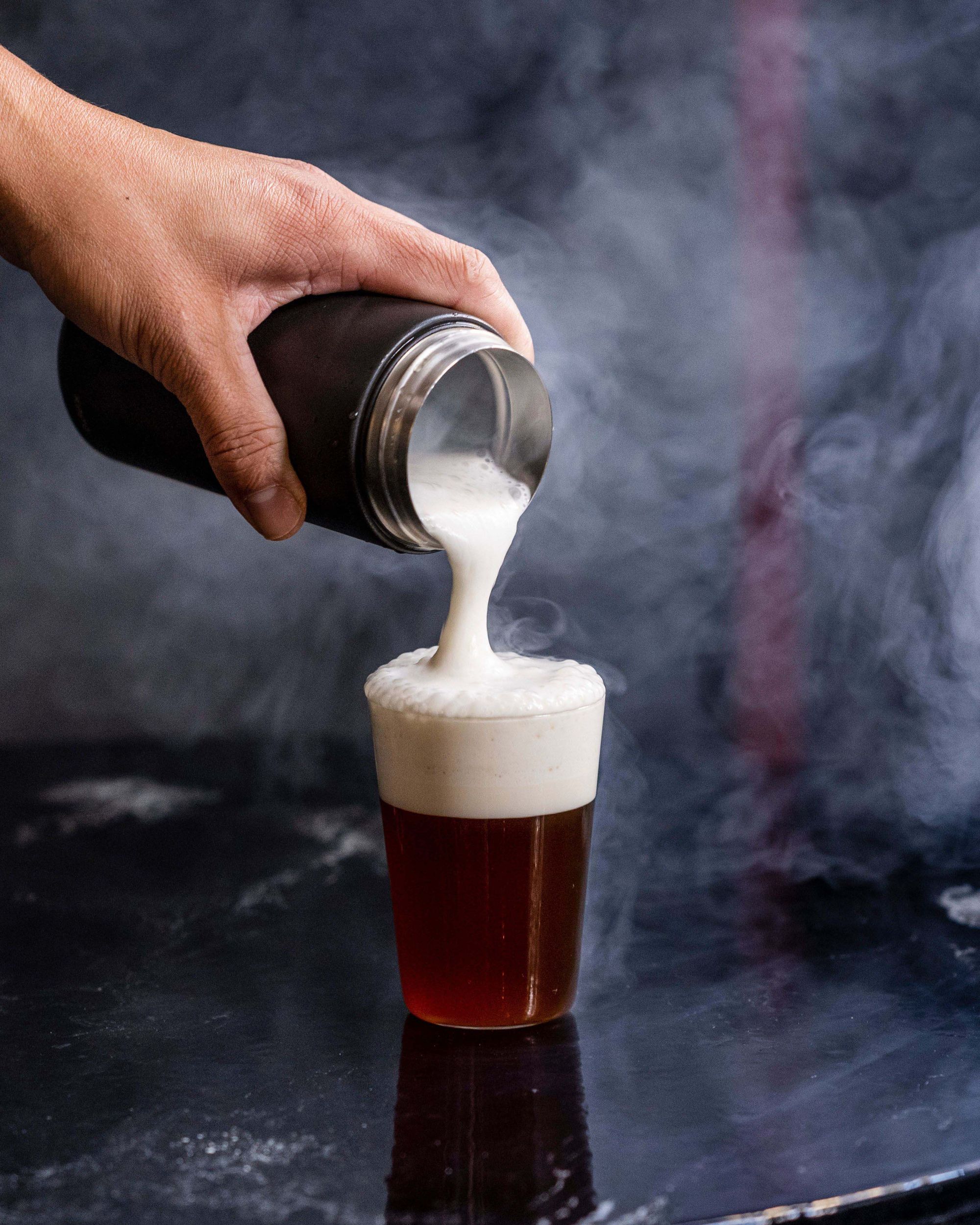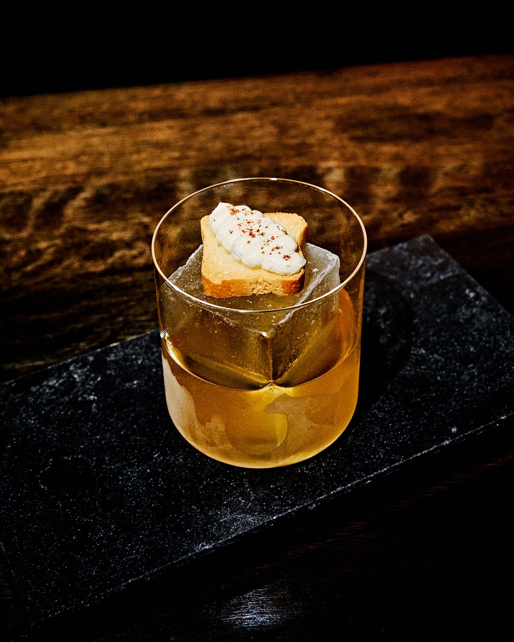 Ingredients: XO sauce, blended malt, mezcal, honey water, sherry, sourdough milk, anchovy mousse.