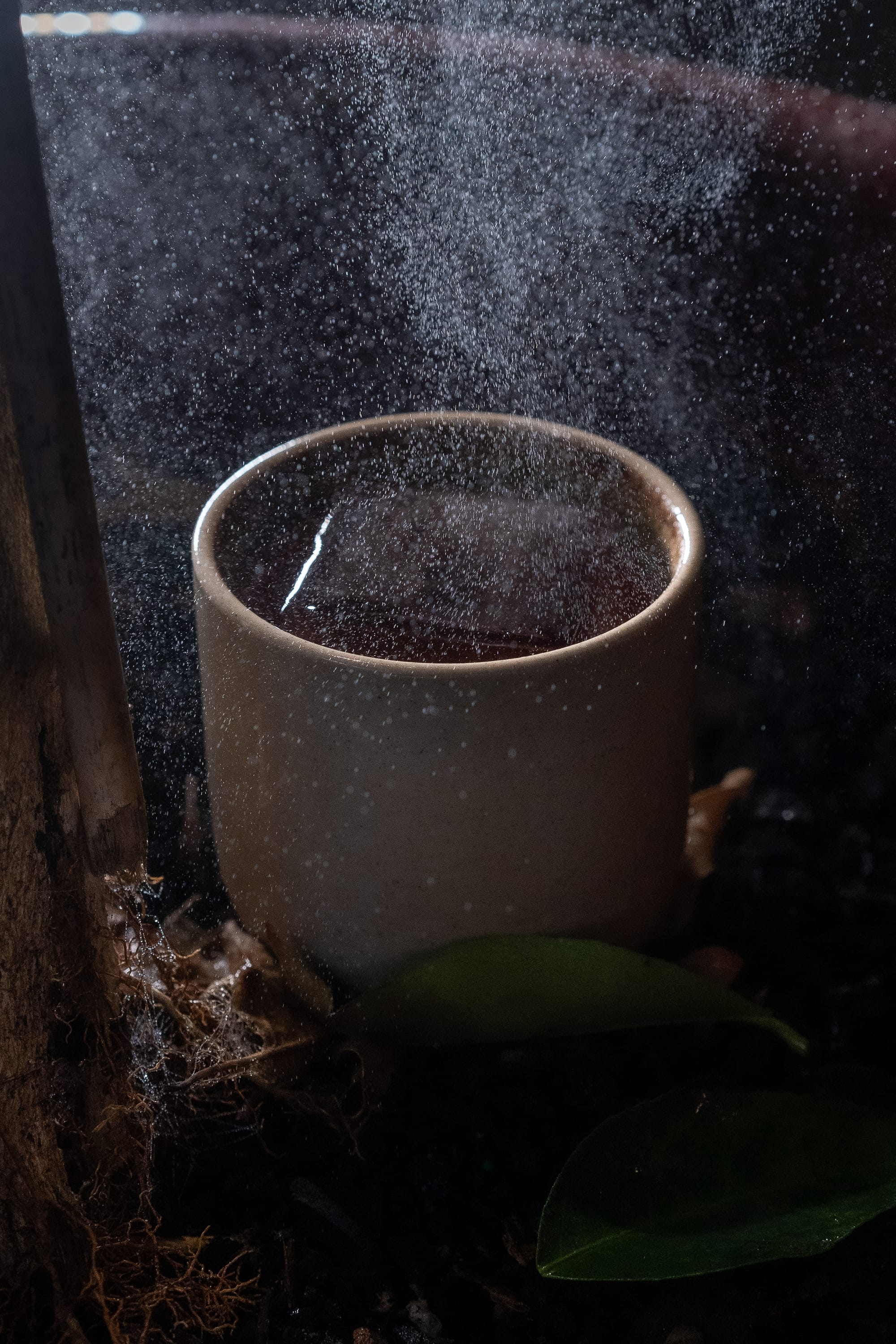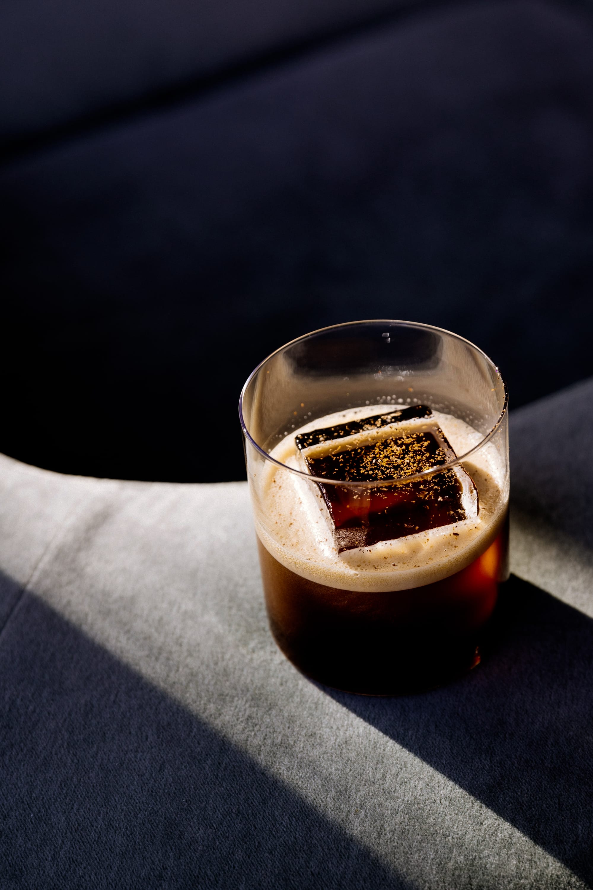 Ingredients: Rock candy syrup, rye whiskey, cognac, coffee, vanilla malt cream, Milo dust.