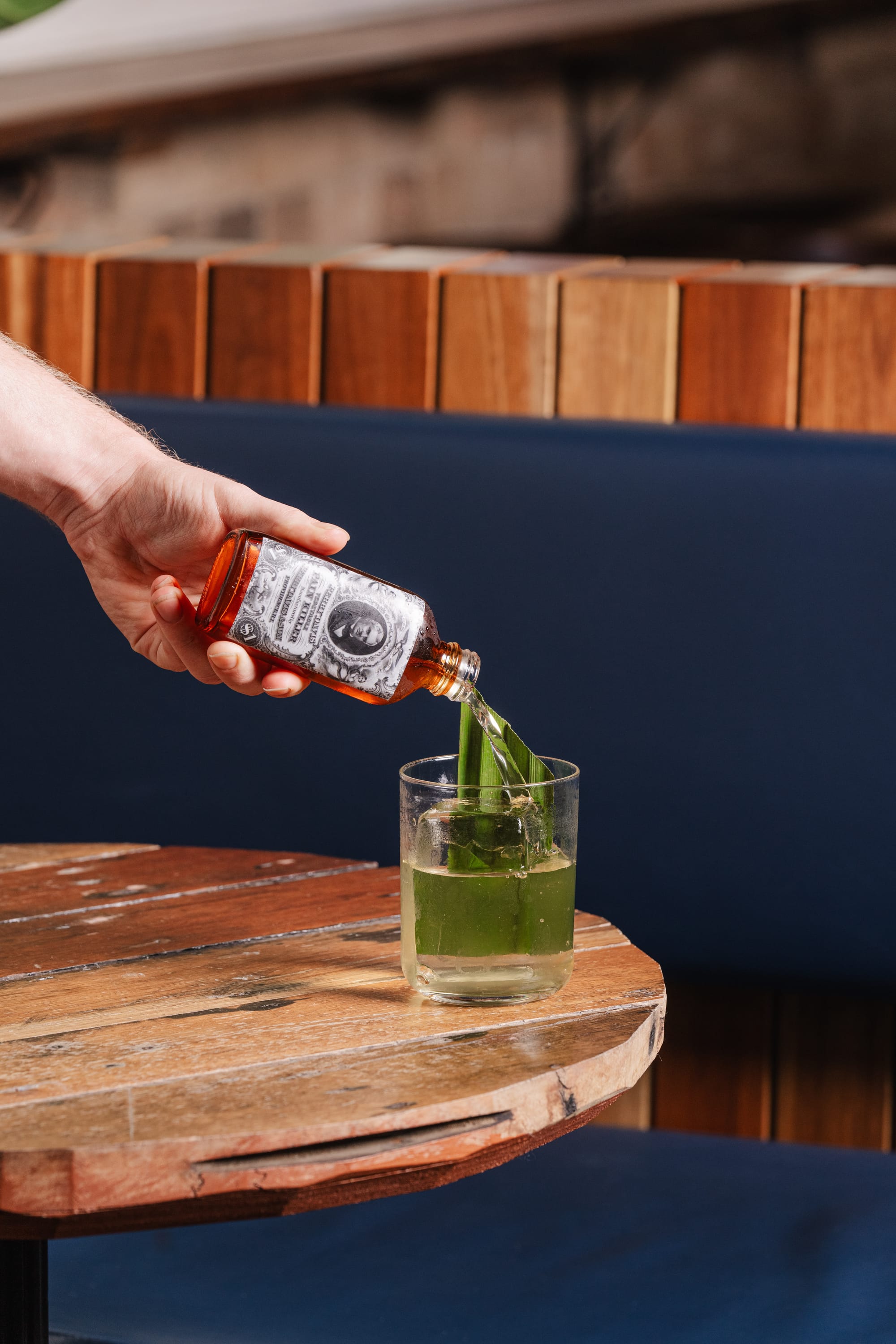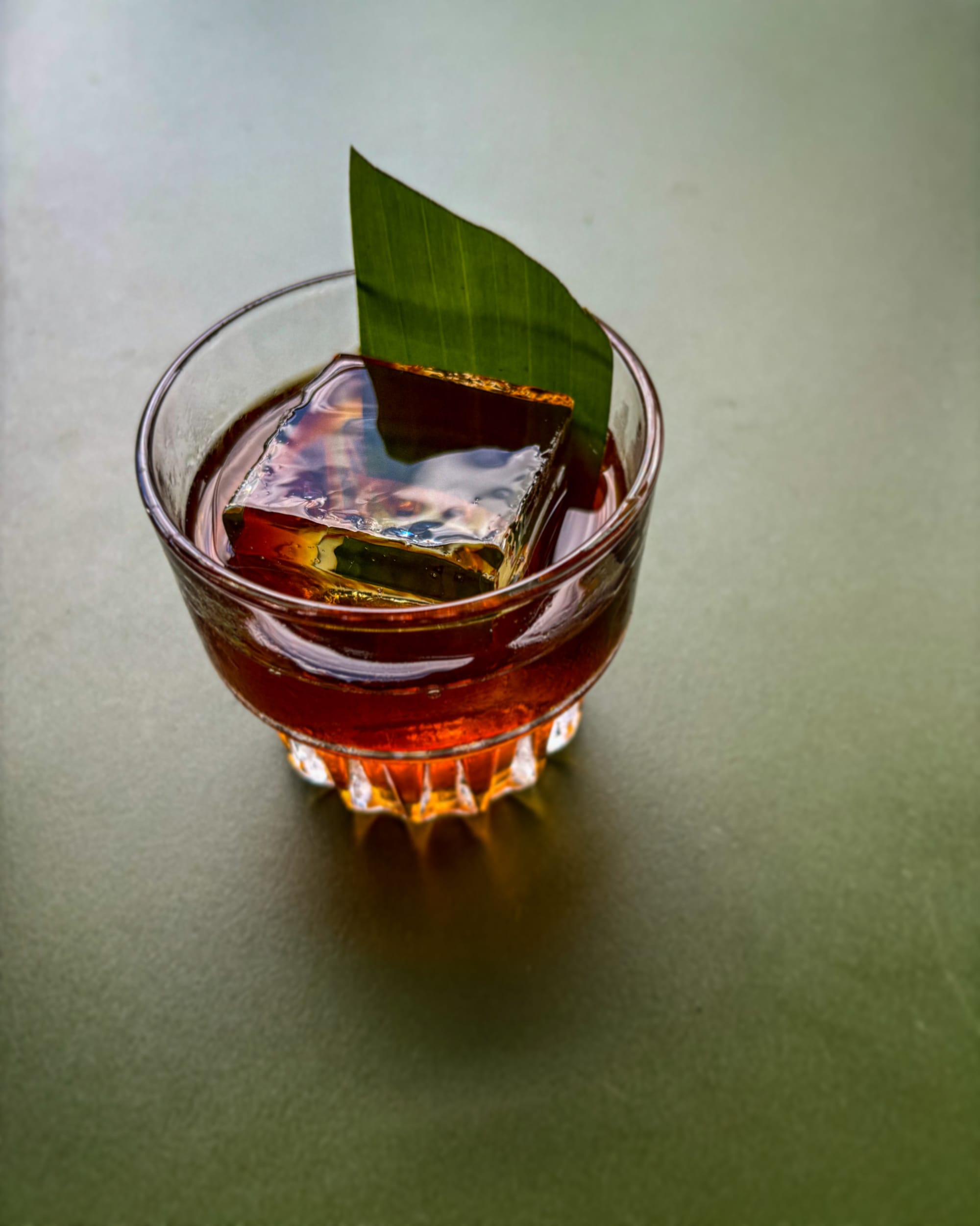 Ingredients: Beeswax-washed rum, banana molasses, pandan-infused Punt e Mes, bitters.
