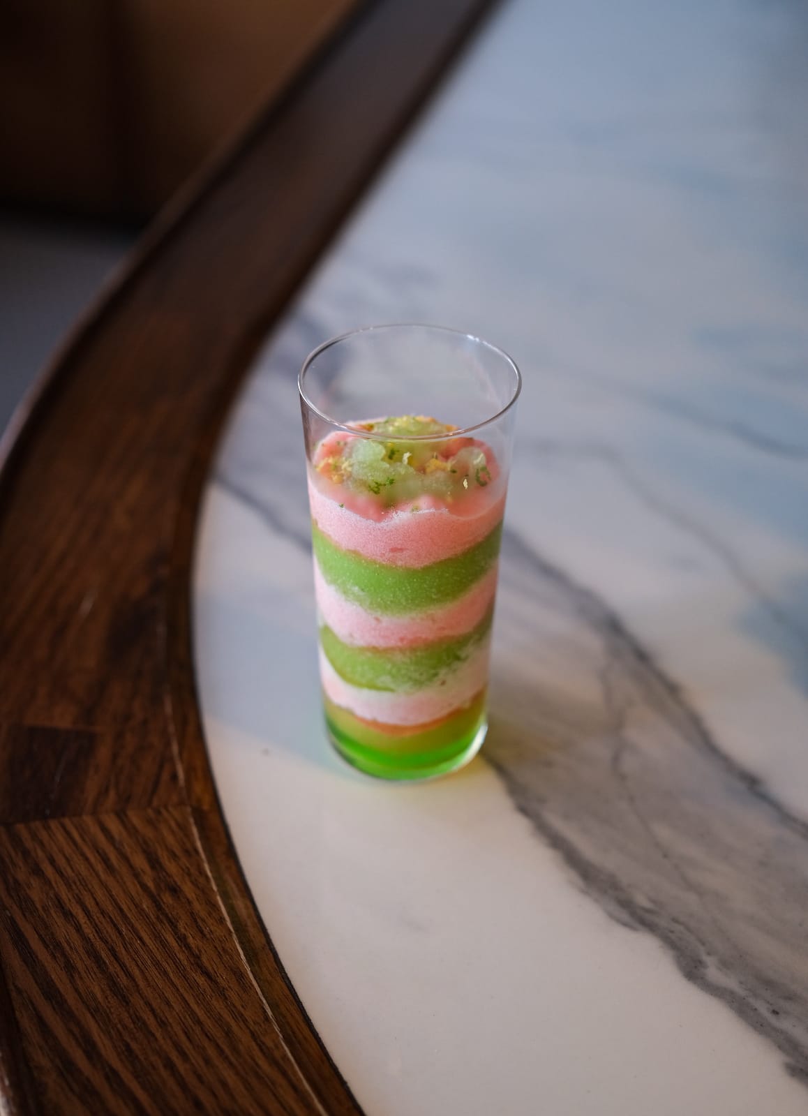A non-alcoholic cocktail resembling a fine aperitif.