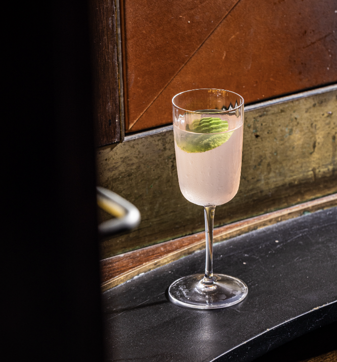 Ingredients: Gin, sparkling wine, fermented apple, vanilla syrup, milk toast.