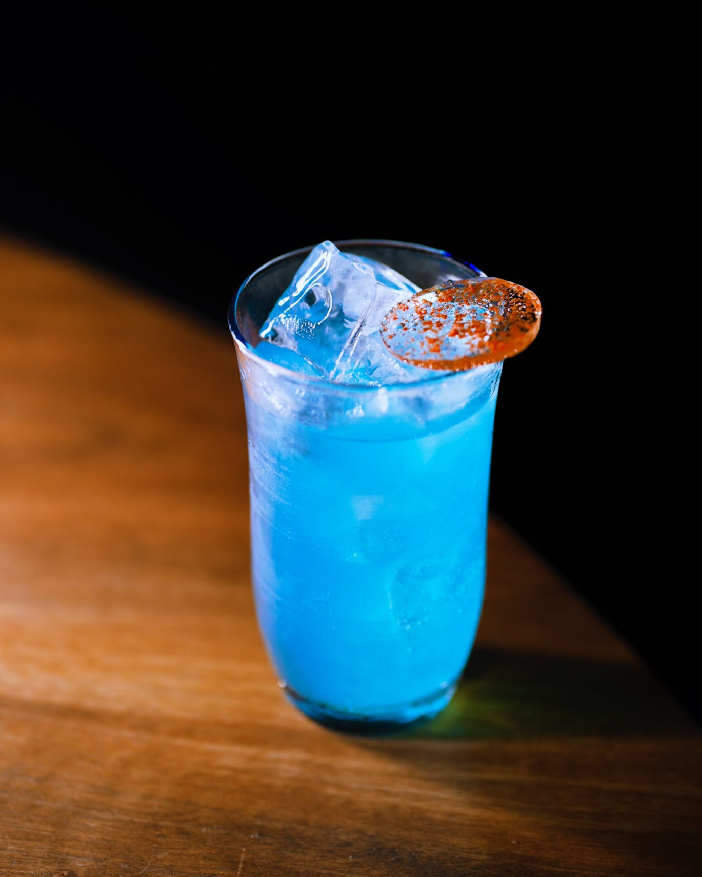 A fruity, refreshing lychee-based cocktail with a striking blue colour.