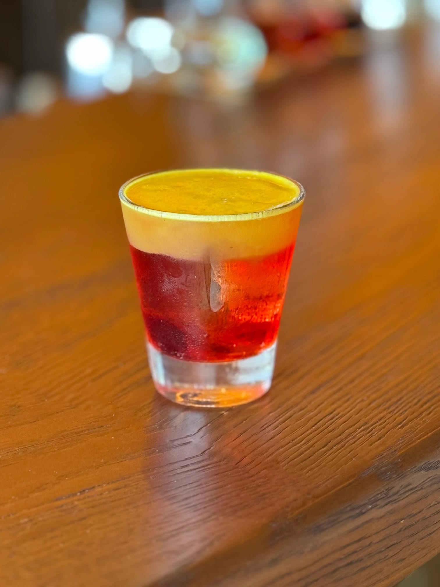 Ingredients: Four Pillars Yuzu Gin, passionfruit marigold vodka, Lemon myrtle Campari, clarified passionfruit juice.